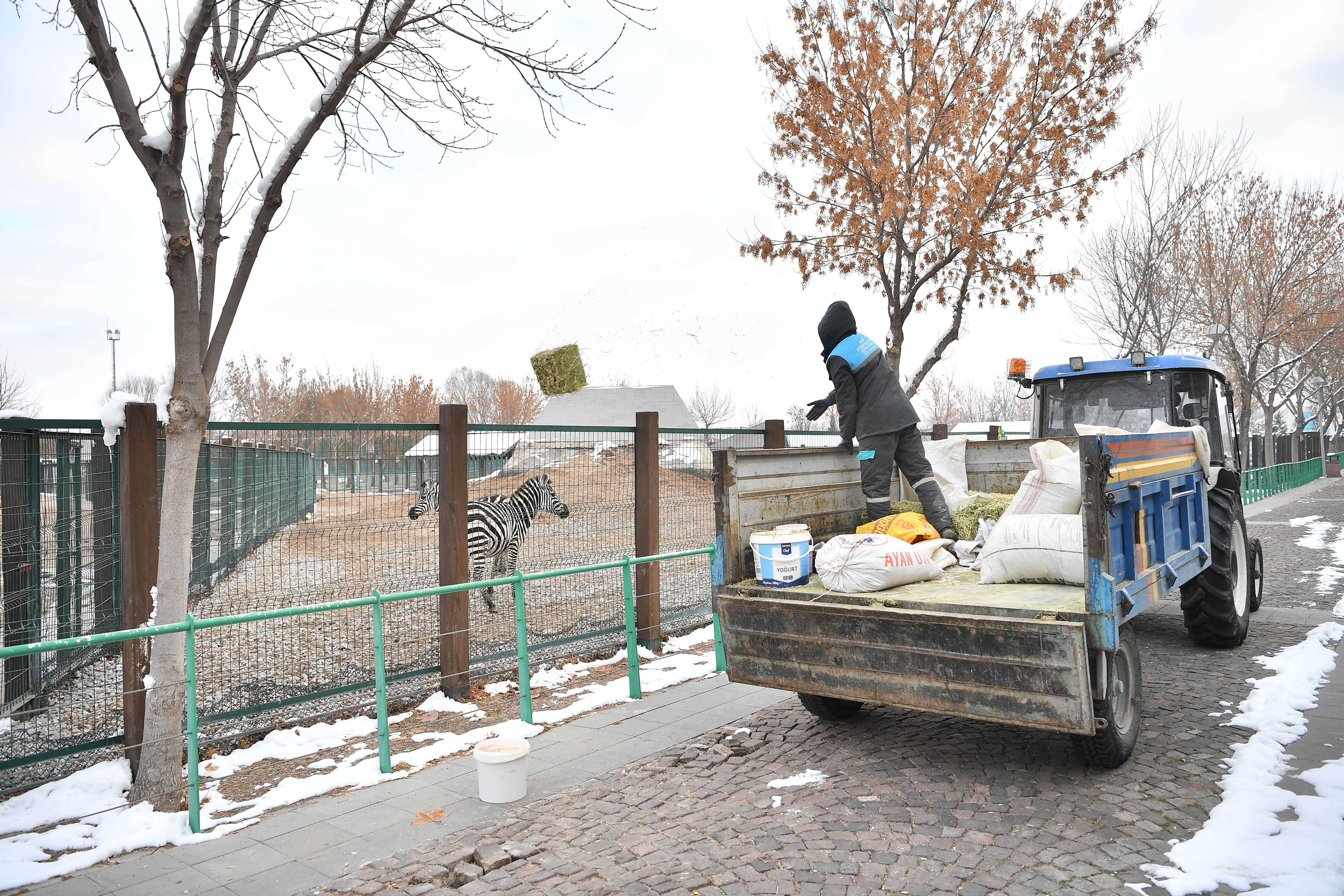Kayseri Büyükşehir Belediyesi, hayvanat bahçesi sakinlerine kış desteği sağladı
