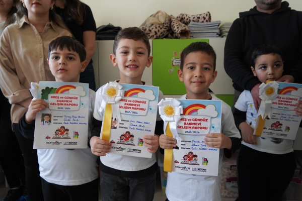 Konyaaltı Belediyesi bünyesinde hizmet veren Toros, Gürsu, Uncalı, Hurma ve Doğa Çocuk Enstitüsü Kreş ve Gündüz Bakımevleri’nde eğitim alan minikler, eğitim öğretim yılının ilk döneminin sona ermesiyle karne heyecanı yaşadı.
