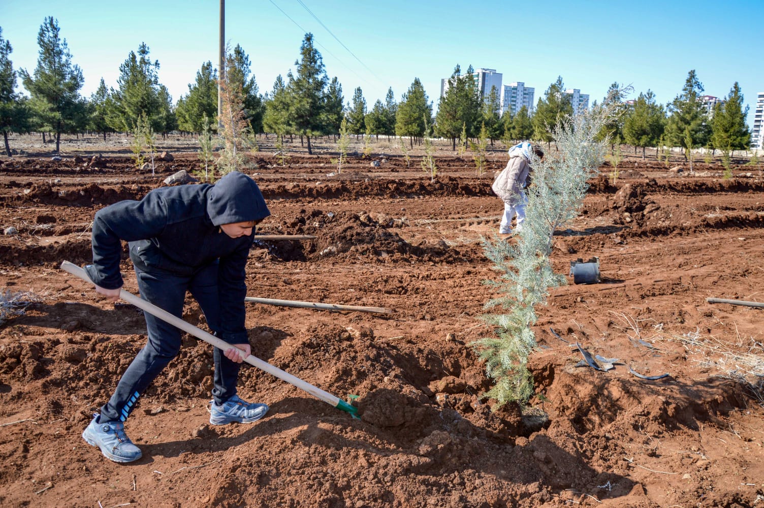 Diyarbakır, 25 Şubat (Hibya) - Diyarbakır Büyükşehir Belediyesinin düzenlediği etkinlikte lise öğrencileri, Fırat Bulvarı üzerinde yer alan Kent 2 Ormanlık Alanına fidan dikti.