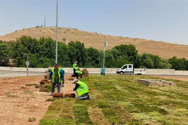 Mardin, 12 Haziran (Hibya) - Mardin Büyükşehir Belediyesi, Savur ilçesi Köprübaşı Kavşağı’nda çevre düzenlemesi ve çim serimi çalışmaları gerçekleştirdi.