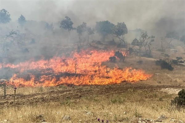 Mardin’in Mazıdağı ilçesine bağlı Konur (Şebe) ve Meşeli (Melebik) kırsal mahalleleri arasında bulunan ormanlık alanda sabah saatlerinde çıkan yangın, rüzgarın etkisiyle kısa sürede geniş bir alana yayıldı.