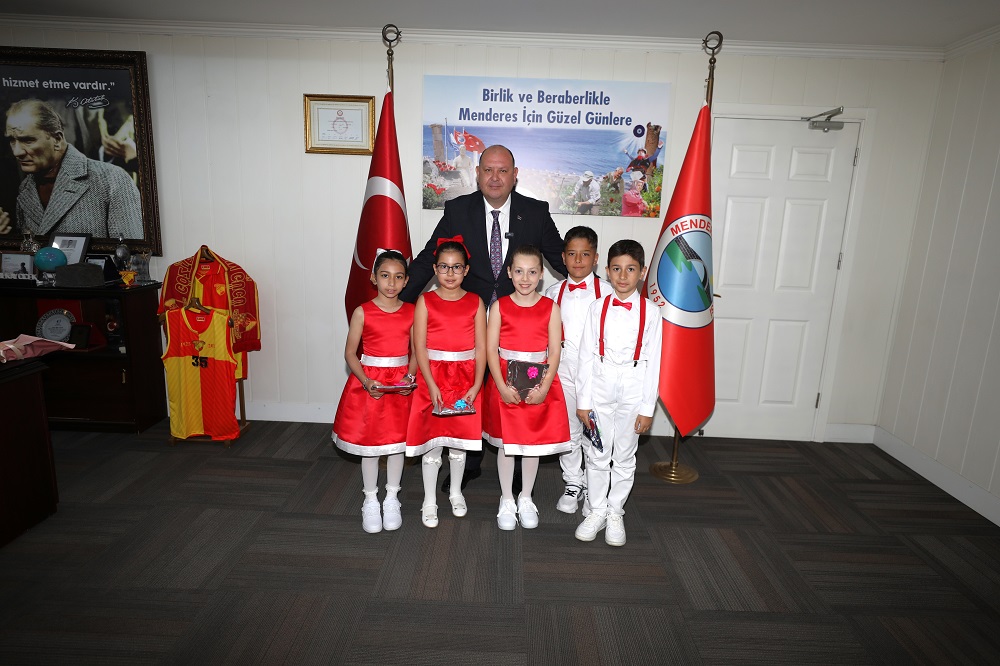 Bu kapsamda, Menderes Belediye Başkanı İlkay Çiçek, makamını Cumaovası İlköğretim Okulu 4. sınıf öğrencilerinden Deniz Hayat Tür, Elif Hifa Avcı, Mahir Arda Çınar, Mehmet Emir Küçüker ve Mira Salış’a emanet etti.