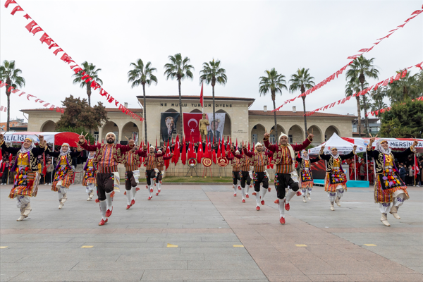 Mersin Tren Garı’nda, saygı duruşunda bulunulması ve İstiklal Marşı’nın okunmasının ardından başlayan törende Mersin Büyükşehir Belediyesi Halk Oyunları Ekibi’nin sunduğu gösterinin ardından, protokol üyeleri tarafından muharip gazilerden oluşan temsili heyet karşılandı.