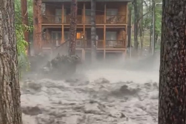 Sosyal medyada yayınlanan ve NBC News tarafından doğrulanan videolar, hızlı akan sel sularında yolların sular altında kaldığını ve bir evin Rio Ruidoso nehri boyunca sürüklendikten sonra ağaçlara çarptığını gösterdi.