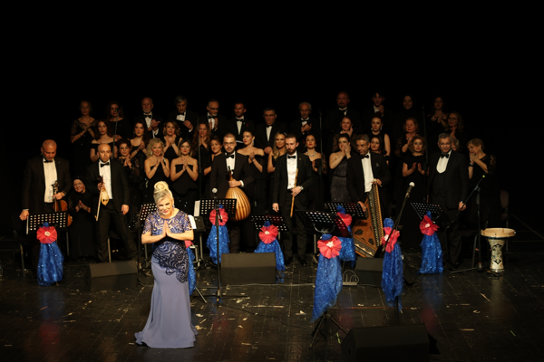 Konserin finalinde, Nilüfer Belediyesi Türk Sanat Müziği Korosu adına Şef Filiz Başıbüyük’e çiçek takdim edildi.