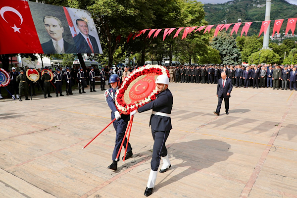 Törende, Vali Muammer Erol, Garnizon Komutanı İkmal Albay Hakan Oktay, Büyükşehir Belediye Başkanı Dr. Mehmet Hilmi Güler, Türkiye Muharip Gaziler Derneği Ordu Şube Başkanı Selami Türkmen, Türkiye Harp Malulü Gaziler Şehit Dul ve Yetimleri Derneği Ordu Şube Başkanı Nurettin Korkmaz ile Polis Şehitleri ve Malul Gazileri Yardımlaşma Derneği Başkanı Şenel Şahin tarafından Atatürk Anıtı’na çelenk bırakıldı. Ardından, saygı duruşunda bulunuldu ve İstiklal Marşı okundu.