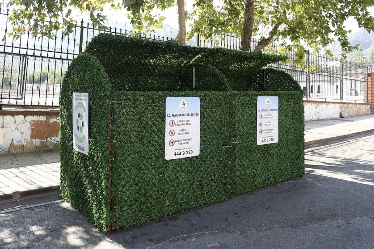 Pamukkale Belediyesi tarafından , çöp konteynerleri özel tasarlanmış yeşil çitlerle kaplanarak ilçede çevre ve estetik bilincinin artırılmasıı hedeflendi.