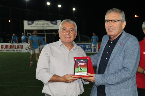 SAKARYA-04.09.2023-HİBYA- Sakarya İnternet Yayıncıları Derneği Başkanı Hüseyin Pınarlı, Sakarya Olgunlar Futbol Turnuvası’na verdiği destekten dolayı plaketle ödüllendirildi.