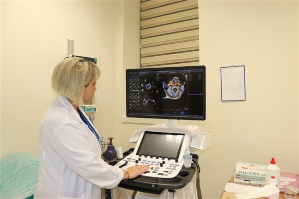 Kardiyoloji Kliniği Görüntüleme Sorumlusu Prof. Dr. Asuman Biçer, yeni cihazlarla birlikte iki boyutlu ve üç boyutlu transtorasik ile transözofageal ekokardiyografi hizmetlerinin aktif olarak verilmeye başlandığını ifade etti. Prof. Dr. Biçer, ekokardiyografinin, invaziv olmayan yapısı ve hızlı sonuç alınabilmesi sayesinde tanı sürecinde büyük avantaj sunduğunu belirtti.
