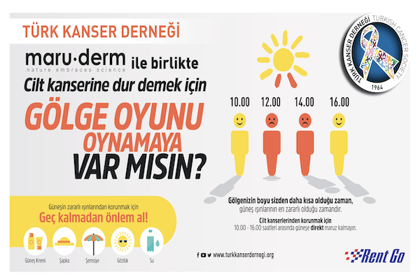 Cilt kanserlerine farkındalık yaratmak, vatandaşlarımızı cilt kanserleri hakkında bilinçlendirmek ve cilt kanserinden korunmaları için gerekli bilgileri paylaşabilmek üzere Türk Kanser Derneği ve Maruderm el ele verip, Rent Go’nun ulaşım desteği ile Cilt Kanserine Dur Demek İçin Gölge Oyunu Oynamaya Var Mısınız? etkinliği için yola çıktı.