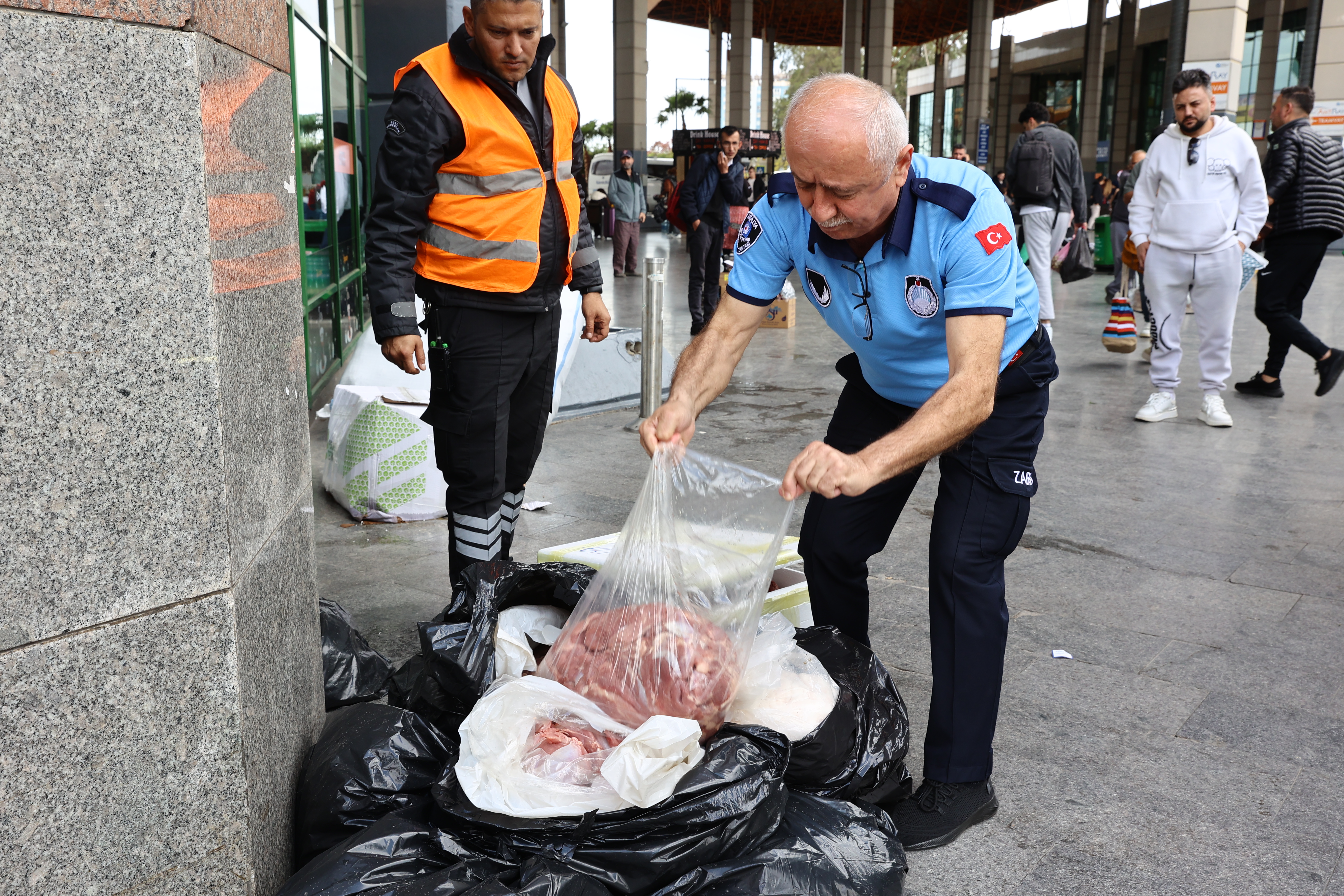Antalya Şehirlerarası Otobüs Terminali’nde Büyükşehir zabıta ekipleri ve güvenlik görevlileri denetimler sırasında bir otobüs firmasından çöp poşetleriyle şüpheli malzeme taşındığını fark etti. Poşetleri kontrol eden ekipler, sağlıksız koşullarda taşınan 9 adet çöp poşetinde yaklaşık 300 kilogram et buldu.