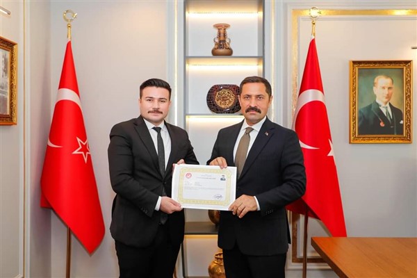 Vali Masatlı, Hassa Kaymakamı Acar’ı “Üstün Başarı Belgesi” ile ödüllendirdi