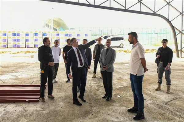 Van Valisi Ozan Balcı, Edremit ilçesinde yapımı süren buz pateni pisti salonunda incelemelerde bulunarak çalışmalar hakkında bilgi aldı.